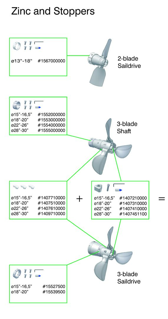 Gori rengassinkki, halkaisija 15-16,5', Saildrive.