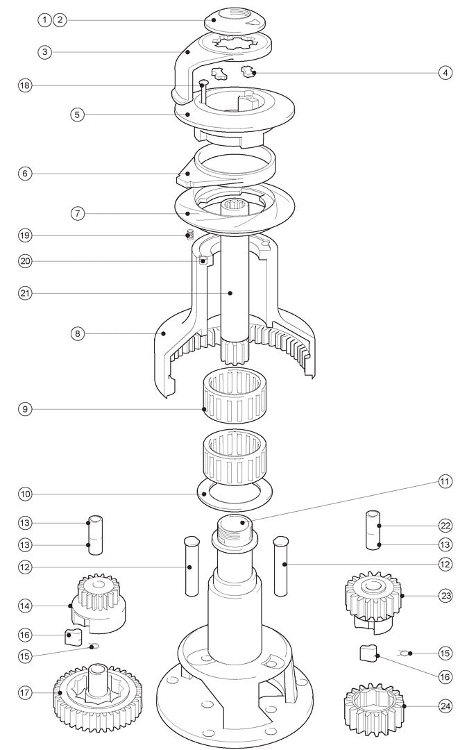 Vinssin kara. Lisäosa Lewmarin Oceanin kaksinopeuksiselle, itsejalustavalle 28-30ST-vinssille (osa nro 21).