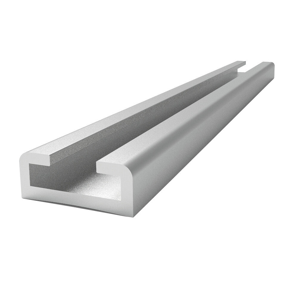 Extruded aluminium track profiles, suitable as luff track for a sail, securing awnings to structures and curtain side panels.