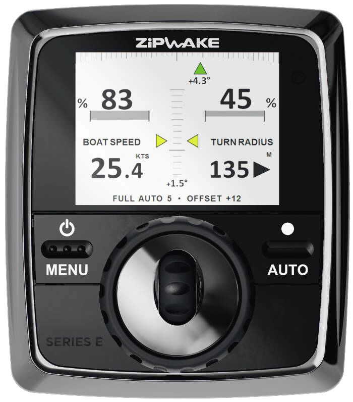 Zipwaken tyylikäs ohjainpaneeli on käyttäjäystävällinen ja intuitiivinen. Sen avulla kuljettaja voi keskittyä olennaiseen - ja nauttia veneilystä!<br /><br />Paneelin kaksi yksilöllistä ohjauspyörää mahdollistavat helpon ja nopean trimmin, kallistuman tai kulkusuunnan hallinnan. Järjestelmä toimii kuitenkin tavallisesti automaattisessa ohjaustilassa, mikä otetaan käyttöön painamalla AUTO-painiketta. Tässä tilassa sisäänrakennettu, korkeataajuuksinen GPS, 3D gyro-anturit ja kestävä liikkeenohjain varmistavat automaattisesti epämiellyttävien ja vaarallisten veneen pituus- ja sivuttaiskallistumisten poistamisen.<br /><br />