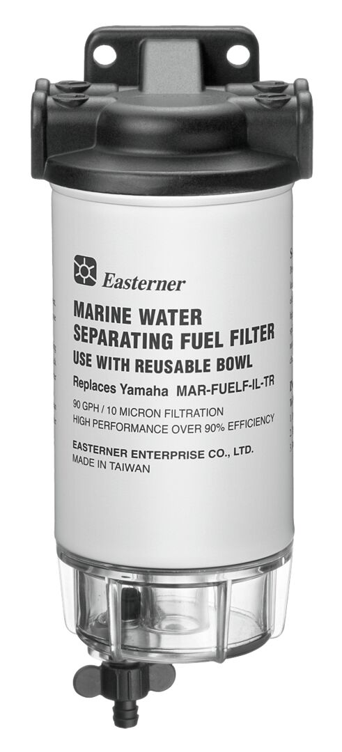 Täydellinen polttoaineen suodatin vesierottimella, alumiininen runko sisältäen letkuliittimet 2 x 9,5 mm sekä 2 x 3/8 ”. Mitat 275 x 106 x 106 mm, yleissuodatin, 10 mikron suodatin.