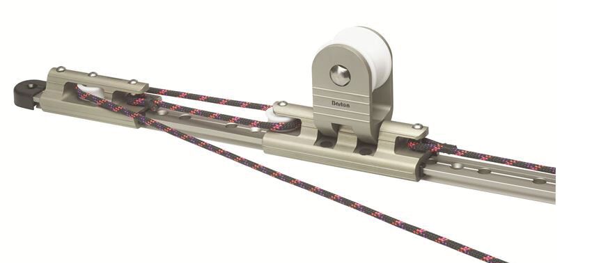 KÖYSISÄÄTÖ GENOA-VAUNUJÄRJESTELMÄ<br /><br />25 mm T-kiskolle, sis 2 päätehelaa, 2 vaunua välitys 3:1.