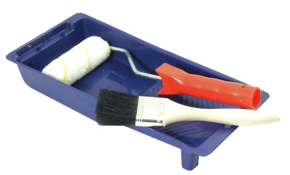Sisältää 180 mm leveän telan ja 50 mm leveän siveltimen.